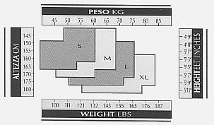 eine Größentabelle. Damit sollte eigentlich jeder in der Lage sein, seine individuelle Größe zu finden.
